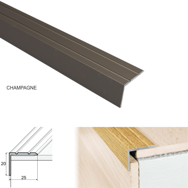 Excellent quality Aluminium stair nosing, providing you with a perfect finish, as well as preventing any damage to your stairs and disguising any imperfections that aren’t so easy on the eye. Stair nosings are an outstanding way of finishing the edge of your stairs. They come in very attractive colors, silver This product comes with a single assembly system, consisting of glue. Excellent design with no visible screws or plugs. Simply peel off the paper strip, place the nosing in the required position and push down firmly to stick it to the floor .