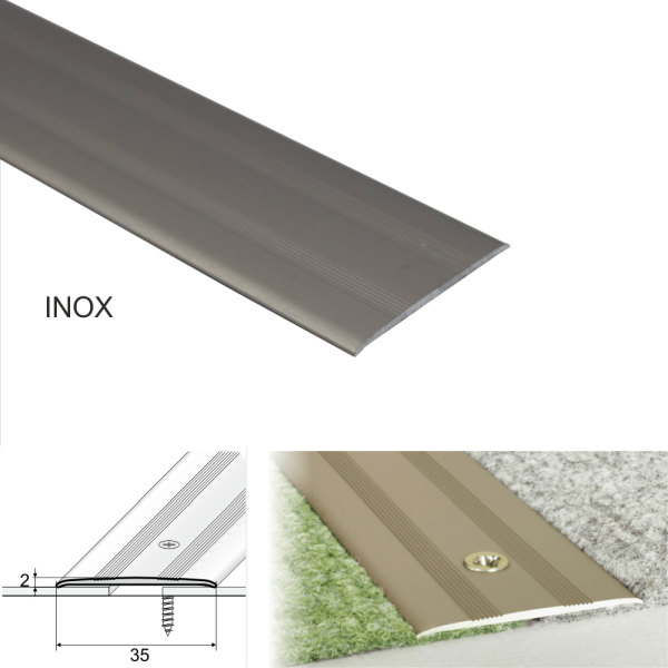 Excellent quality Flat Anodised Aluminium Door Threshold. They come in a very attractive finishes with many options to match your floor. Each trim comes pristine in manufacturers packaging supplied with installation screws and plugs.