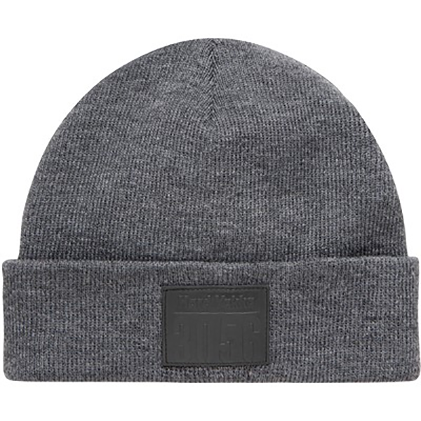 Embossed Leather-Look Patch Beanie Hat