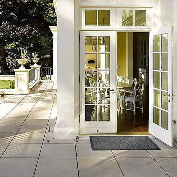 NON-SLIP: This entrance non slip door mat is safe as well as practical. With high-quality anti slip rubber barrier mat backing used to keep the mat firmly in place, there is no chance of unfortunate slips or falls.