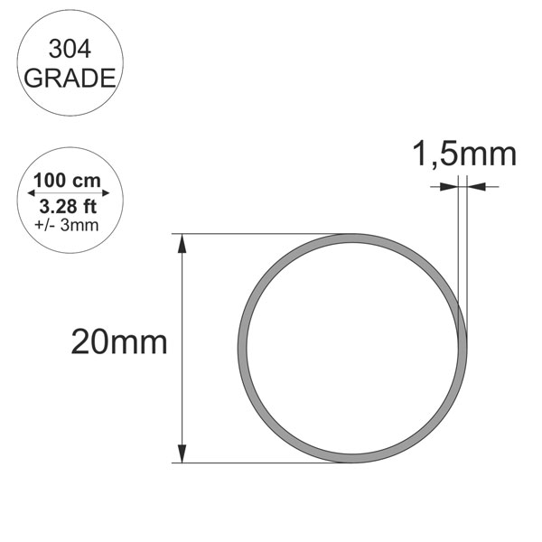 Stainless Steel Round Tube 1m Long / Pipe 304 Grade